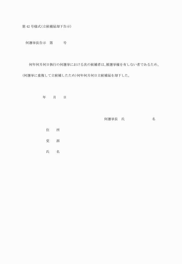 第24条 令第40条((選挙人の宣言))第1項により作成する宣言書は、別記第22号様式による。