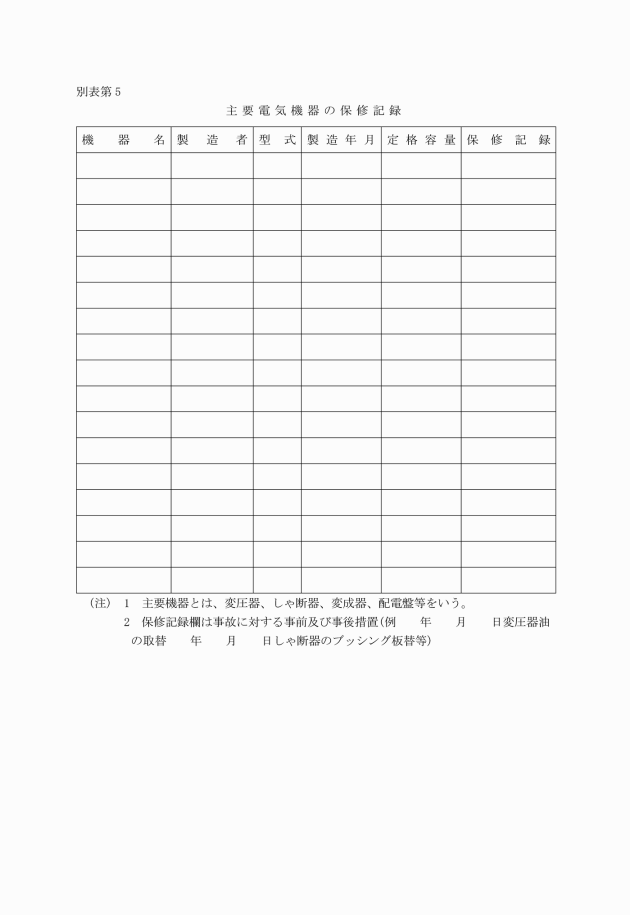 2 主要電気機器の保修記録は、別表第5により記録し、必要な期間保存しなければならない。