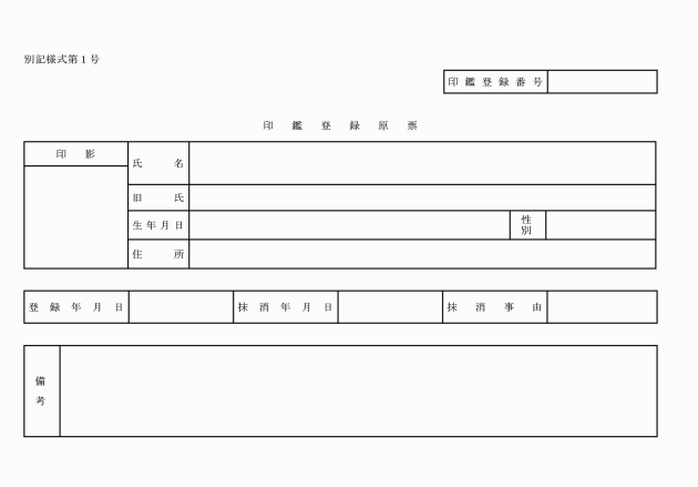 (1) 印鑑登録原票 別記様式第1号