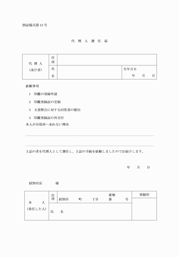 (12) 代理人選任届 別記様式第12号