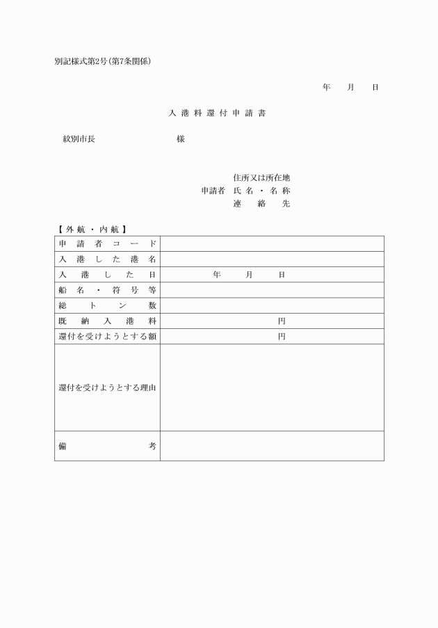 ○紋別市入港料条例施行規則