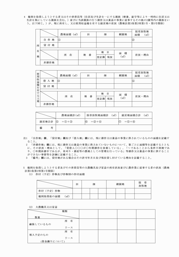 (農地又は採草放牧地の権利移動についての許可申請書)