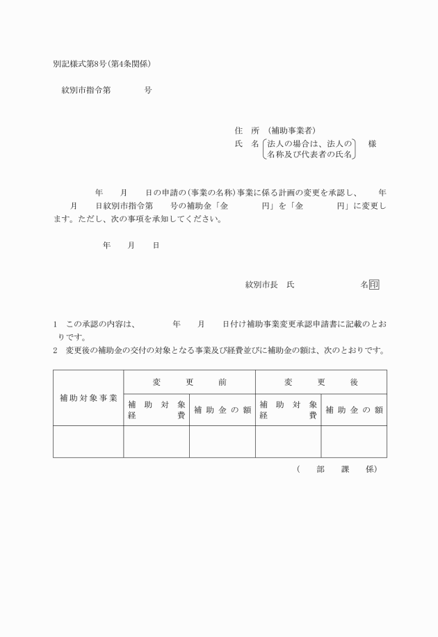 第9条 市長は、補助金の交付の決定をした場合において、その後の事情の変更により特別の必要が生じたときは、補助金の交付の決定の全部若しくは一部を取り消し、又はその決定の内容若しくはこれに付した条件を変更することができる。