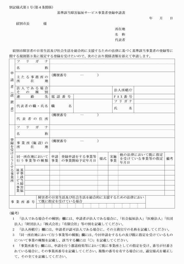 ○紋別市障害者の日常生活及び社会生活を総合的に支援するための法律に基づく基準該当事業者の登録等に関する規則