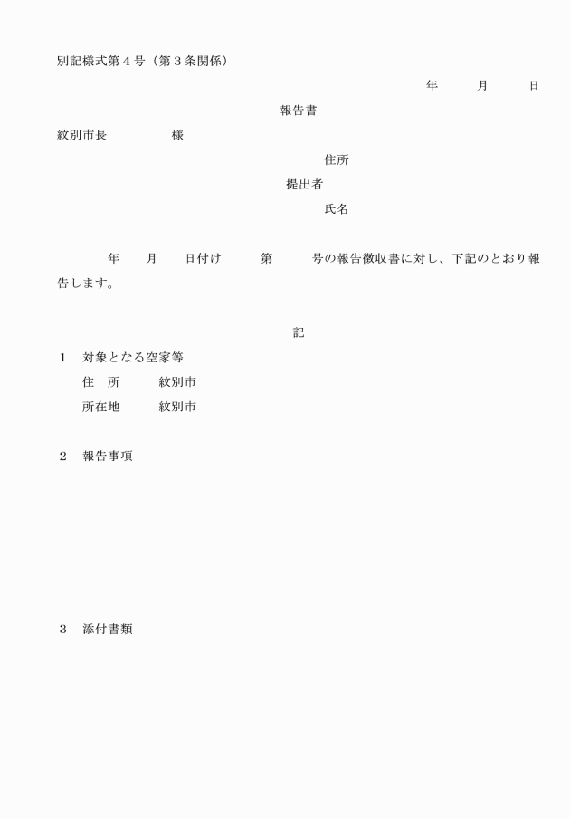 第3条 法第9条第2項の規定による報告の徴収は、報告徴収書(別記様式第3号)により行うものとする。